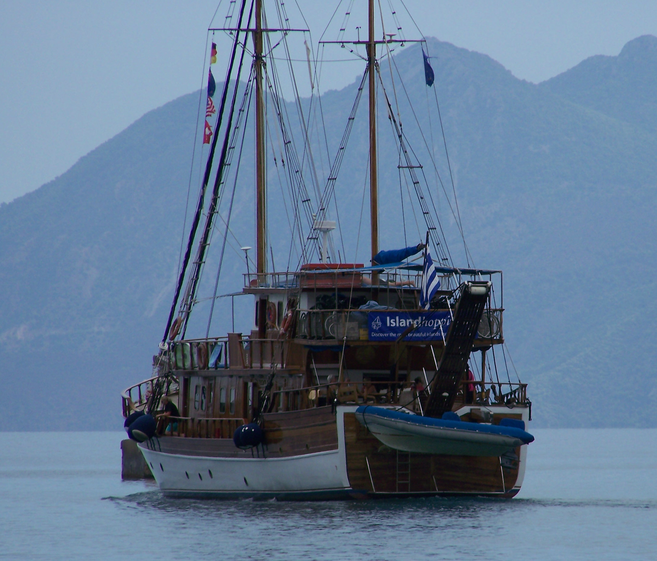 As I was leaving Ancient Epidaurus I passed a large group of cyclists on the way. After I had been in Old Epidaurus for a while the cyclists arrived and boarded the wonderful little sailing ship pictured.